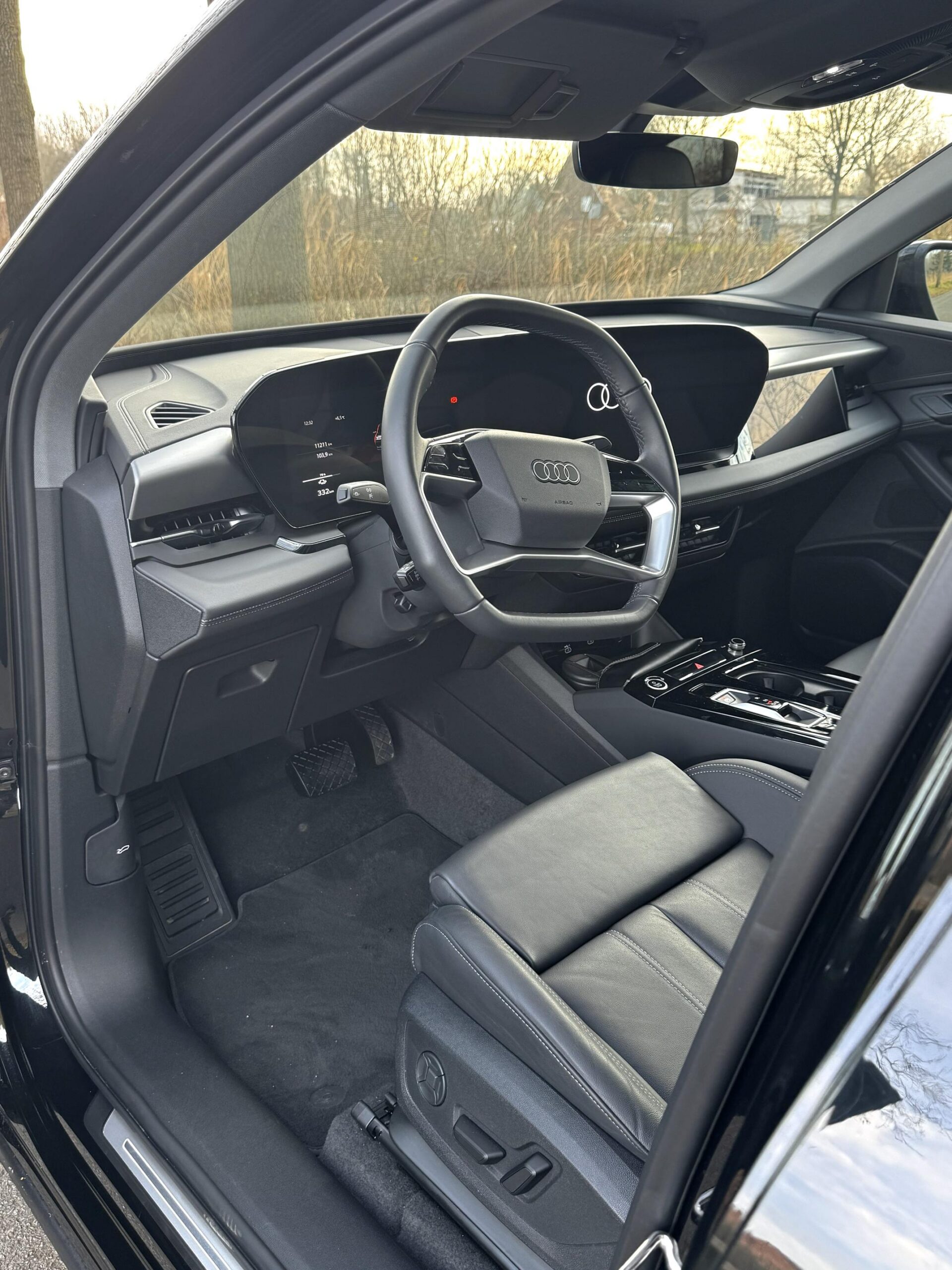 Het design is zakelijk chique. Geen overbodige franjes, wel strakke lijnen, brede schouders en een achterzijde die doet denken aan de e-tron GT. De doorlopende lichtstrip en de digitale OLED-achterlichten geven de Q6 ’s avonds een herkenbare en technische uitstraling, zonder op overdaad te mikken. Het is een auto die zich moeiteloos thuis voelt, zowel in een zakelijke omgeving als in het dagelijkse leven.